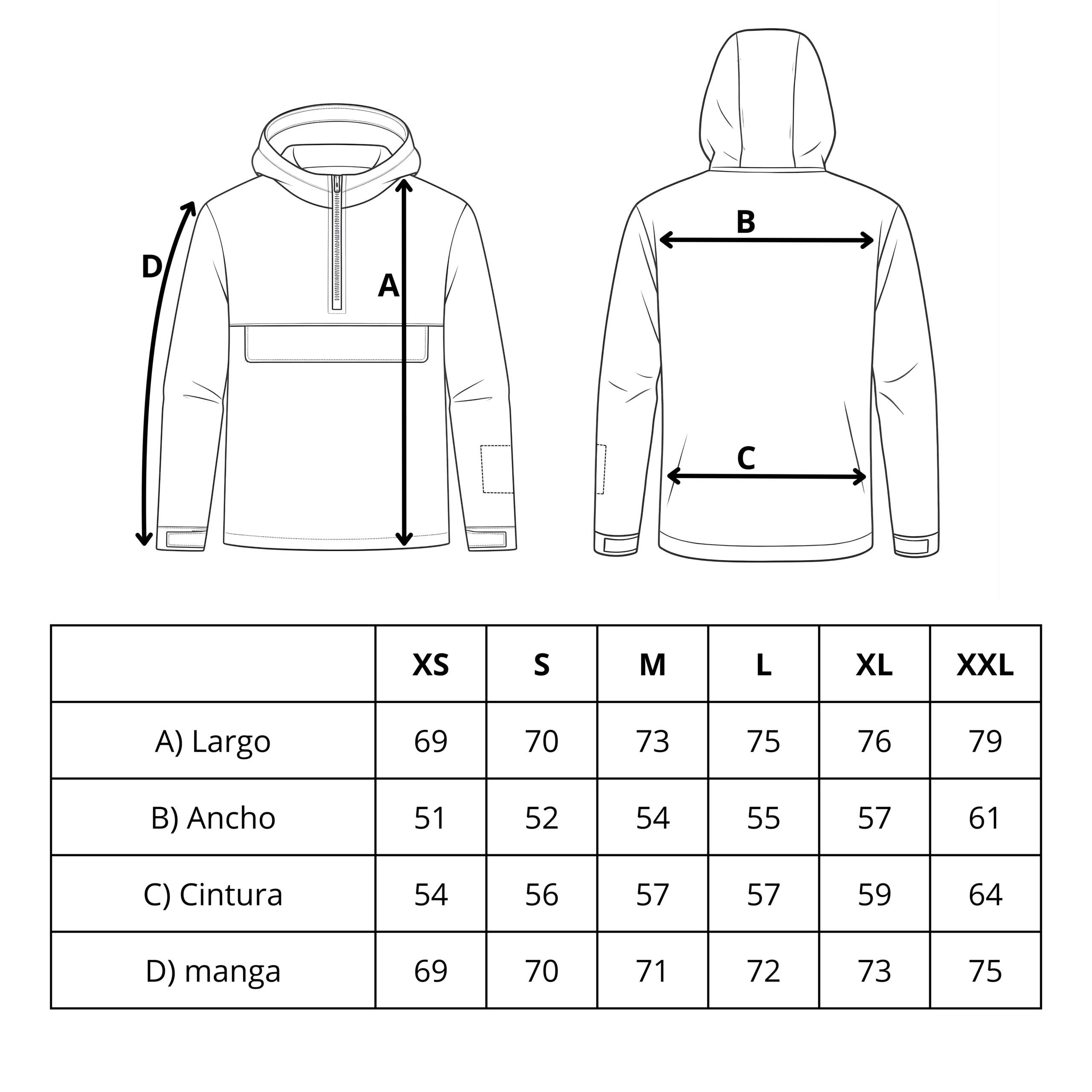 | Talle | XS, S, M, L, XL, XXL |