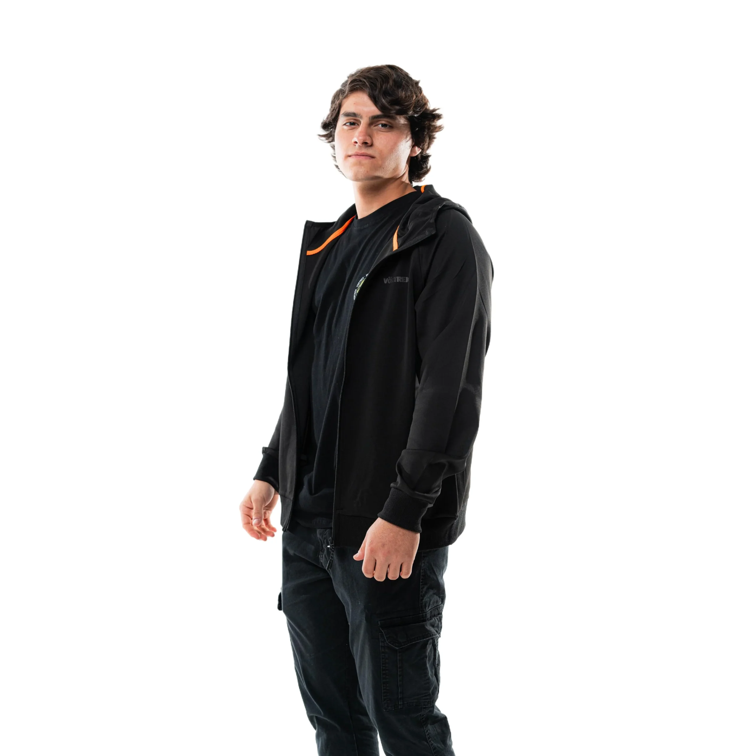Buzo tipo campera con capucha de la nueva linea de Vortrek. Respirable y de secado rapido ya que esta confeccionado en poliester de la mas alta calidad.