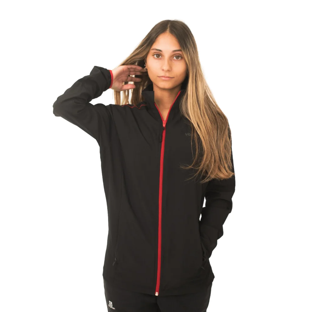 Campera deportiva Mujer CHARVIN color Negro-Rojo